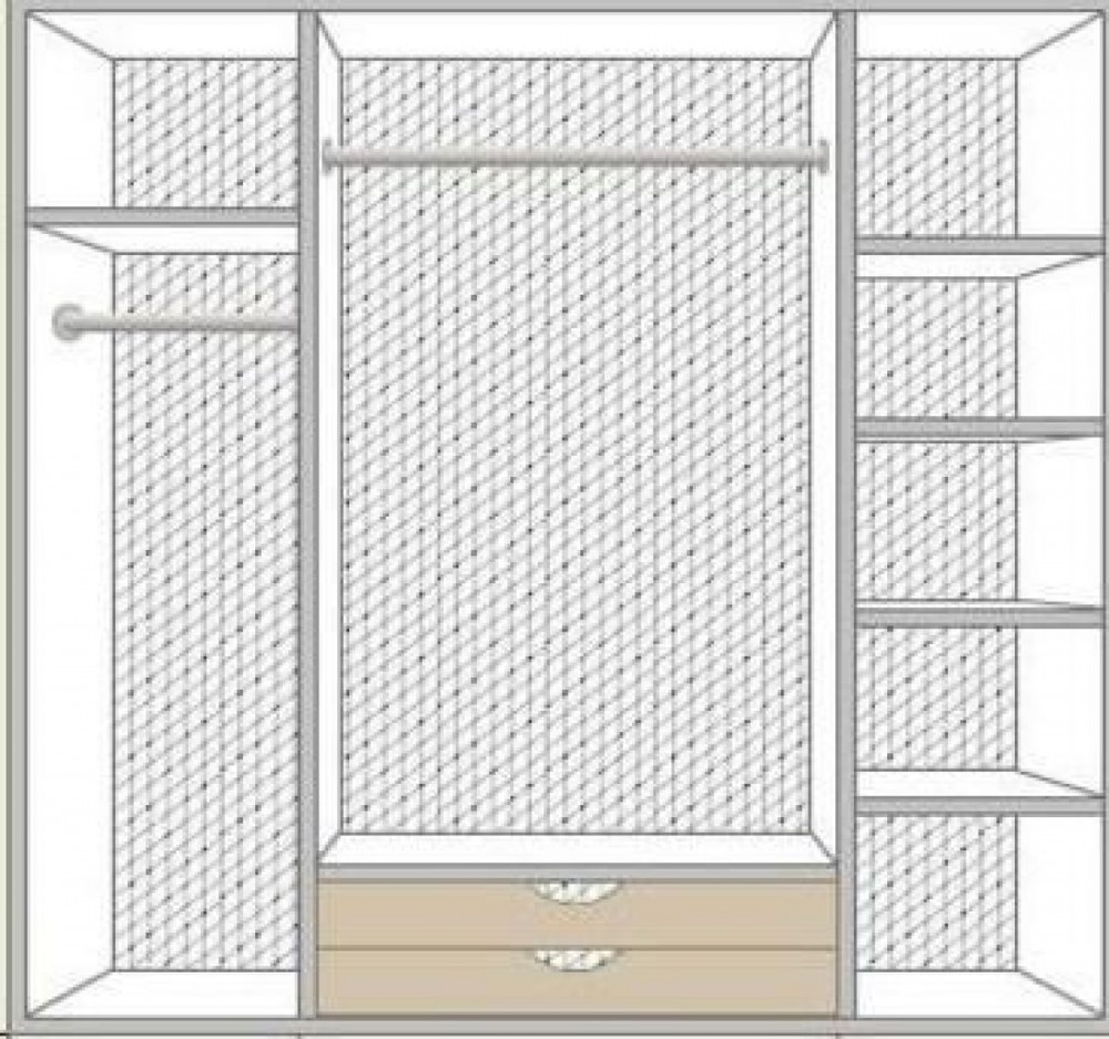 Шкаф-купе 2250 серии SILVER S4+S1+S4 B22+PL4 (по 2 ящика лев/прав+F обр.штанга) профиль «Серебро»